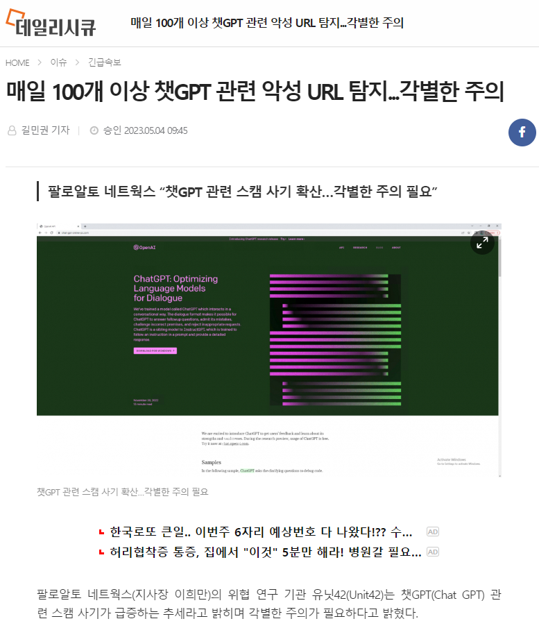팔로알토 네트웍스의 위협 연구 기관 유닛42는 챗GPT 관련 스캠 사기가 급증하는 추세라고 밝히며 각별한 주의가 필요하다고 밝혔다.