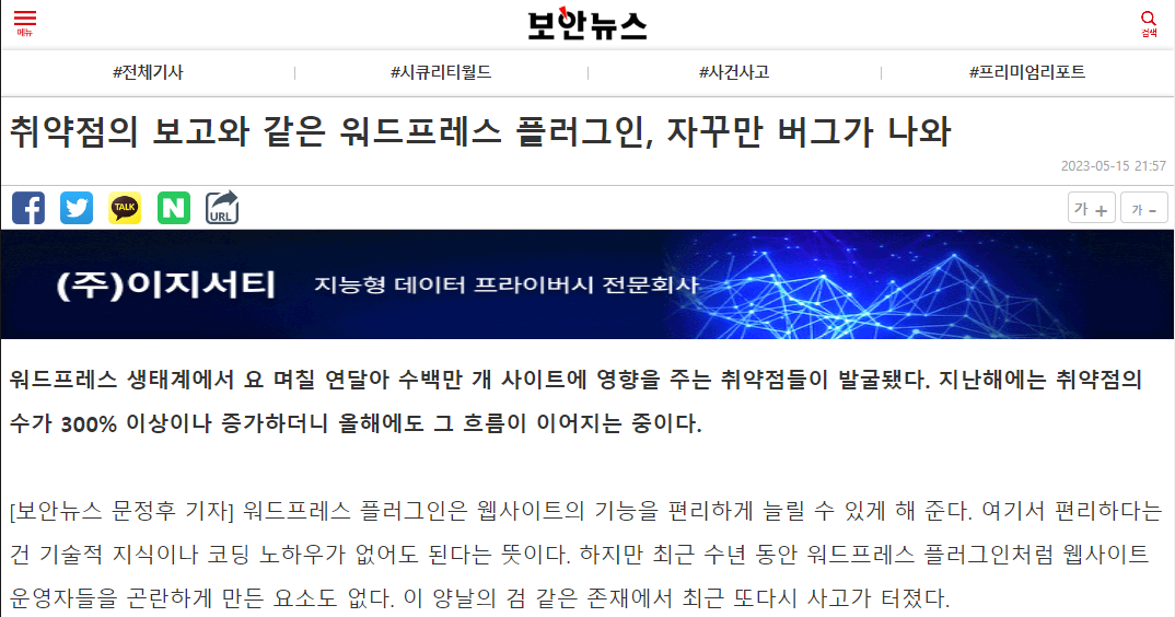 | 취약한 워드프레스 플러그인, 개념증명용 코드가 악용 (0) | 2023.05.15 |