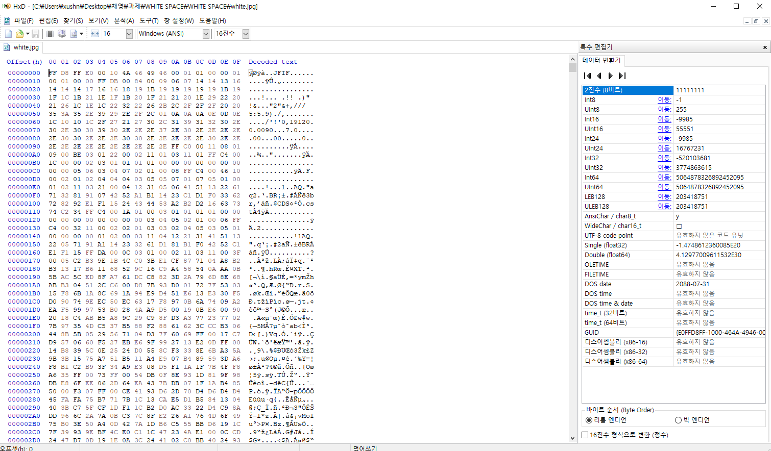 JPG파일을 HXD를 통해 확인해보면